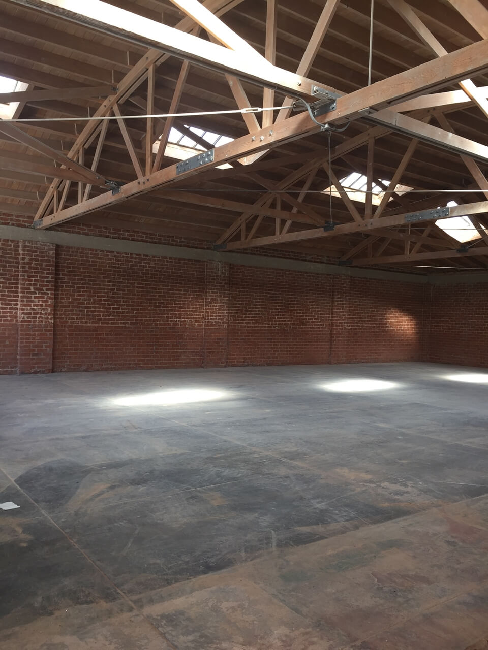 This beautiful off-market site is a former Mercedes Benz auto body shop that is currently in the process of being renovated and re-positioned into a creative office campus. The 17,628 SF space is a large open layout and has beautiful bow-truss ceilings, exposed brick and polished concrete slab to slab throughout, skylights as well several roll up doors. There is also an interior mezzanine but the highlight of the space is the interior private courtyard solely for the use of the tenant for meetings, breakout space, lunch or just relaxing in the sun. This prime Santa Monica location is ideal for production, entertainment, tech and new media office users desiring an open layout and beautiful high ceilings. It’s walking distance to tons of retail amenities up and down the Wilshire Retail Corridor and comes with secured parking off-site as well as several City Parking structures in the vicinity. Easy access to the 10 freeway. This is a property unlike anything else in Silicon Beach where this much private, open space is hard to come by.