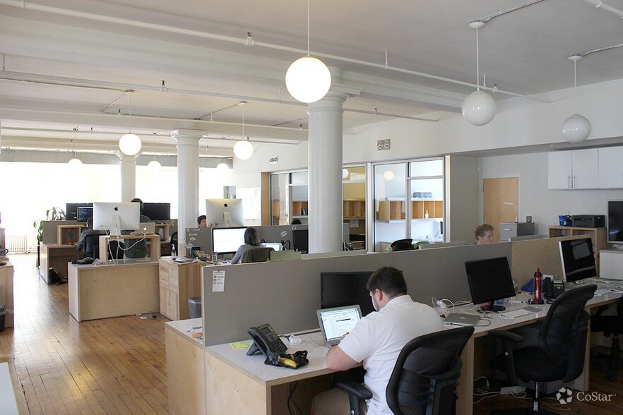 A rare, full floor office space opportunity in the heart of Chelsea hit he market today. Located at 56 West 22nd Street (between 5th and 6th Avenues), the entire 9th floor measures 5,300 rentable square feet. Currently built with 6 windowed offices, a windowed conference room, pantry, reception area and bullpen, the unit is perfect for any tech, media, or advertising firm (floorplan here). Though it is a mid-block building, the loft features 4 sides of light, which are enhanced by the exposed ceilings, glass sidelights and hardwood floors. The landlord will modify the existing installation to suit an incoming tenant’s needs and pricing is quite attractive for the neighborhood (click here to contact us for the asking rent).