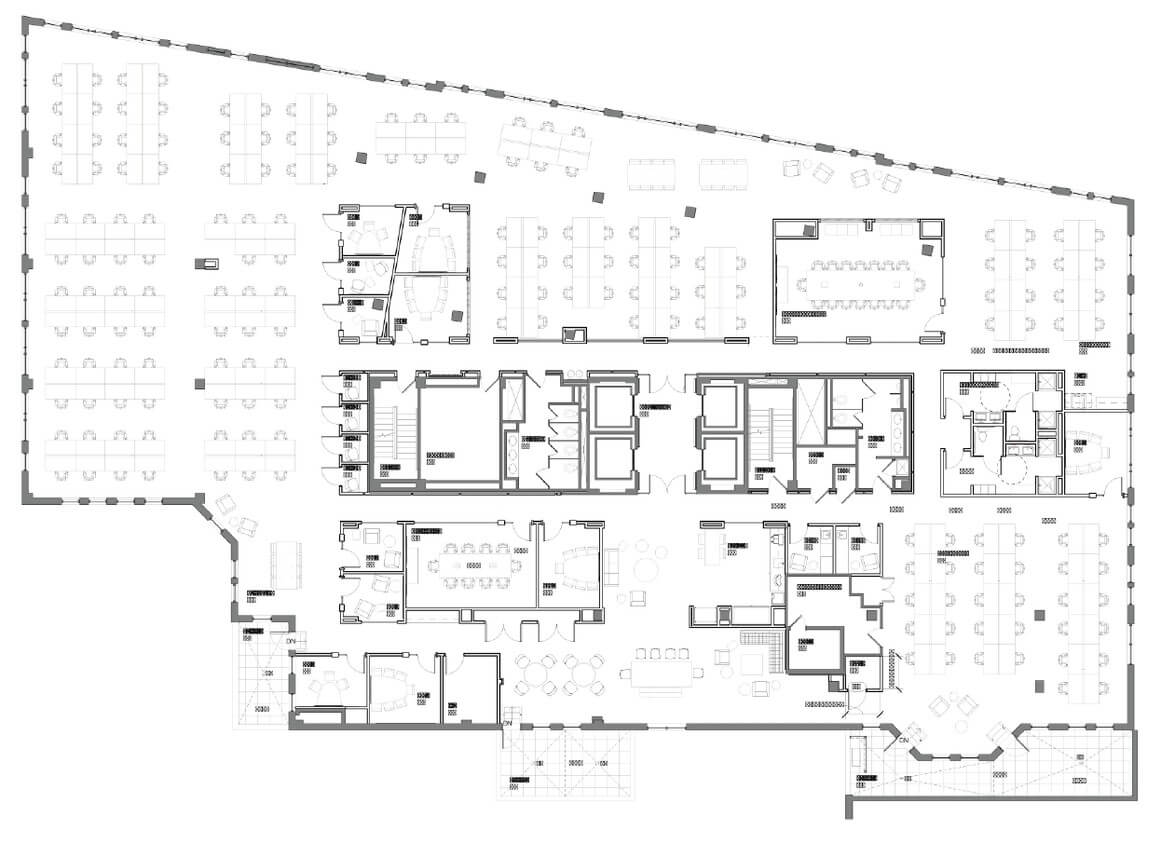 Perfect for tenants looking for a highly efficient open plan, the 5th floor suite allows for 172 work desks, 10 team rooms, 4 conference rooms and 4 offices. At 17,850 SF, this translates into a 1:101 employees to SF ratio. See floor plan below.