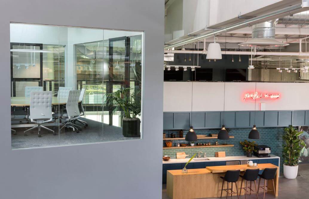 This new Headquarters now has all their employees under one roof, as opposed to scattered about, which bolsters efficiency and creativity as they work. The space is scattered with plants throughout as well as floor-to-ceiling garage roll-up doors bringing in a ton of natural light.