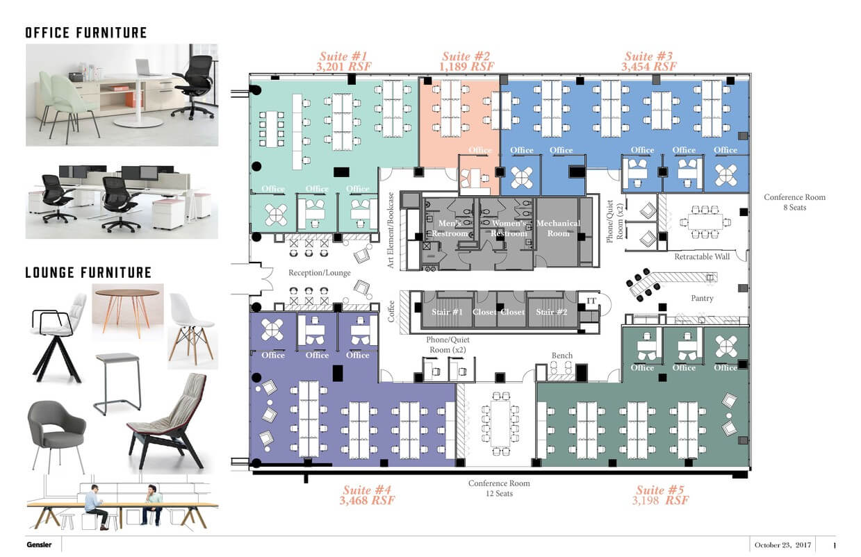 True to the ‘neighborhood’ style of working, WaveOffice will feature a shared communal area with shared amenities surrounded by 5 private suites ranging from 1,189 SF to 3,468 SF. The shared amenity zone features a tenant lounge, coffee bar, large open pantry, phone rooms, free wi-fi and two conference rooms that can accommodate 8-12 person meetings.