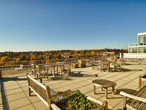 Amenities in the building include a Wingate-Hughes-designed fitness center on the building’s penthouse, which is adjacent to the outdoor roof deck with views of Georgetown and Rosslyn.