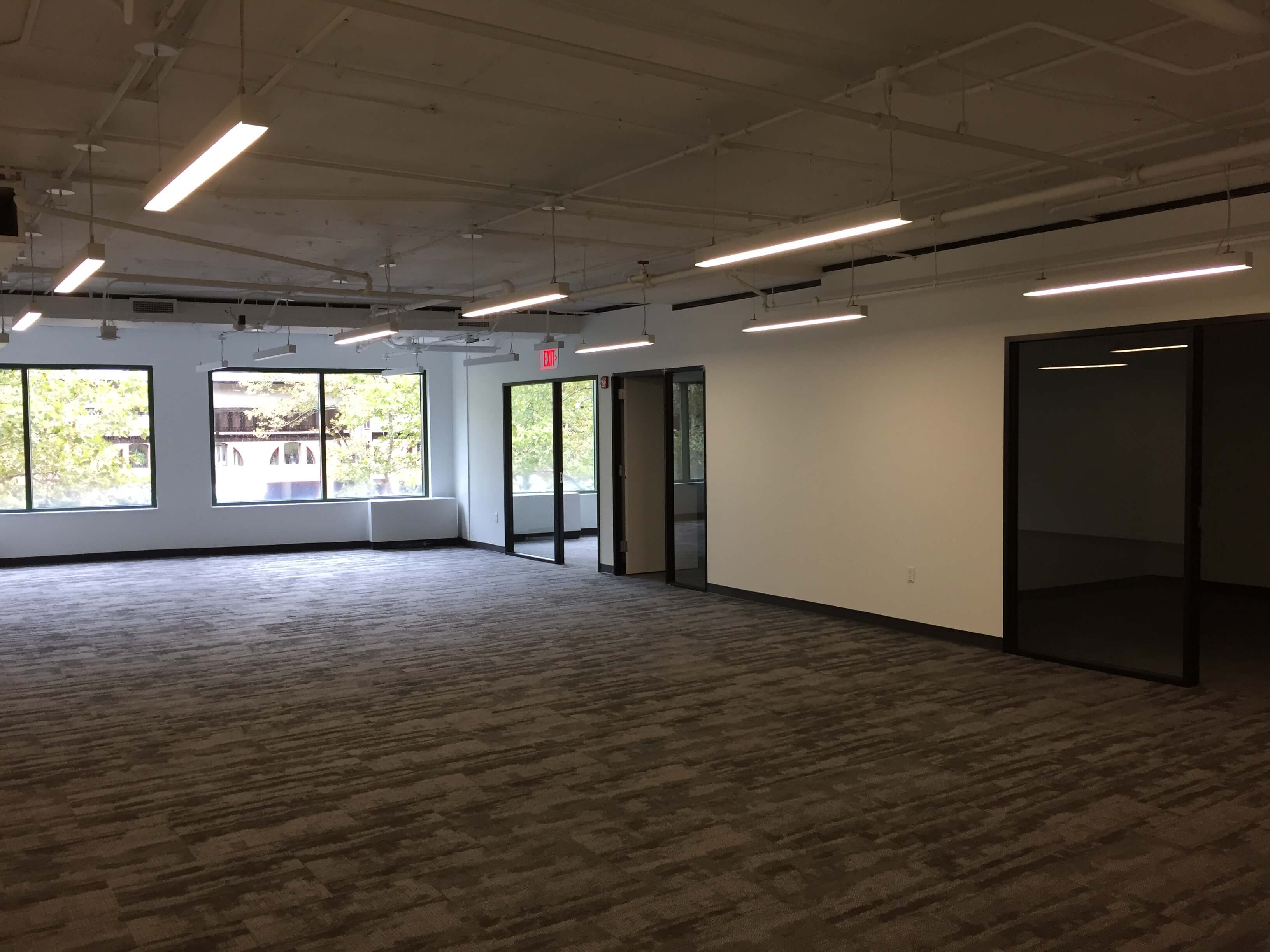 Located on the 2nd floor of 3000 K St at Georgetown’s Washington Harbour, Harbour Town is an experimental coworking concept that combines traditional office leasing with a shared common area and amenity base. Differentiating itself from the co-working norm where you can lease a few desks or offices, Harbour Town is comprised of six individual spec suites surrounding a shared conference room with sliding glass doors, a lounge area and a nicely-finished kitchen.