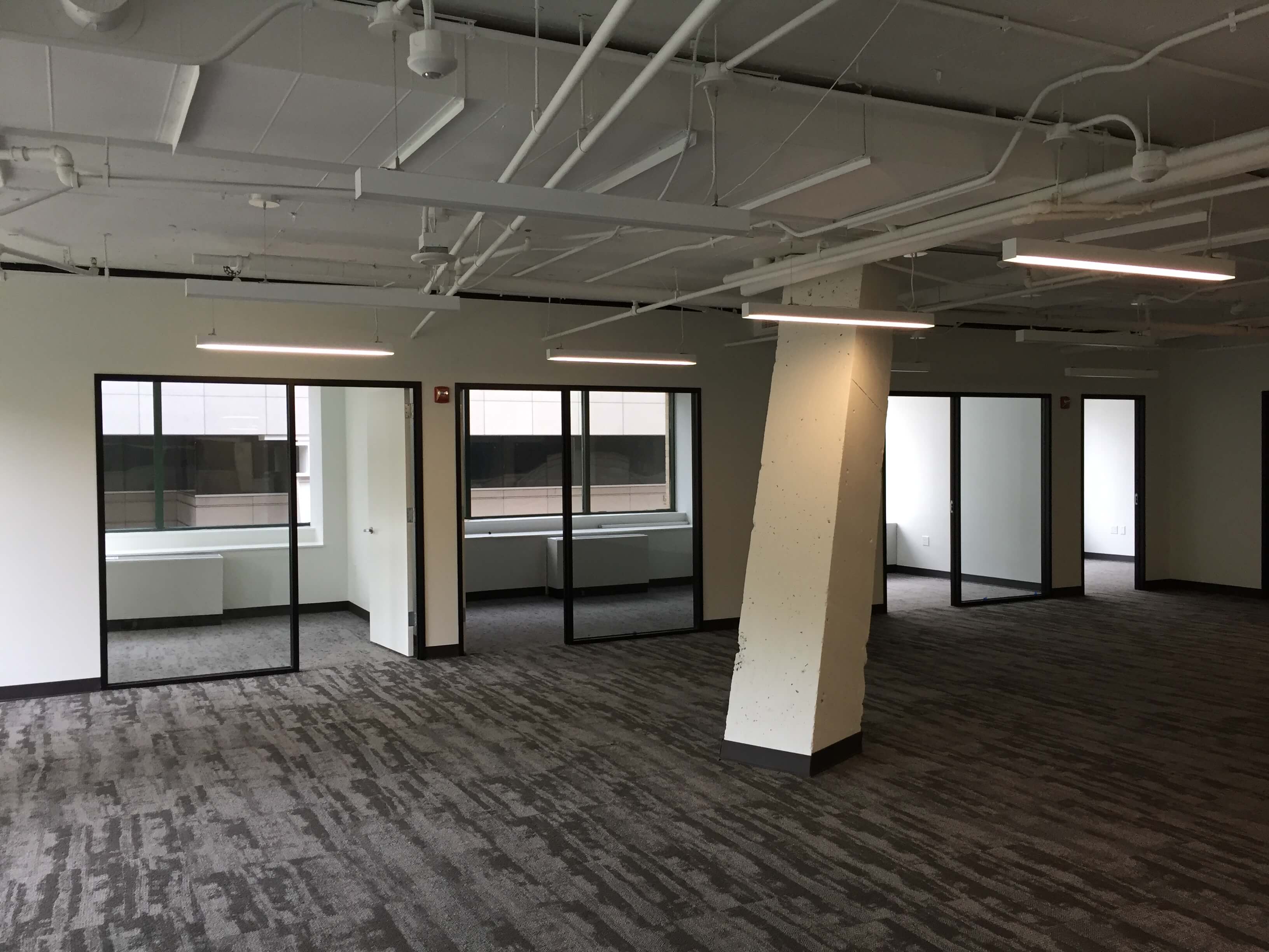 Designed by local architecture firm Wingate Hughes, Harbour Town features subtle details such as hanging lights and distinctive color schemes to appeal to the creative user. Every suite has floor to ceiling glass offices, exposed ceilings, and an open area for a bullpen or collaborative work. Windows envelope the entirety of the space as well, offering views of K Street, 30th Street, and the Georgetown Waterfront.
