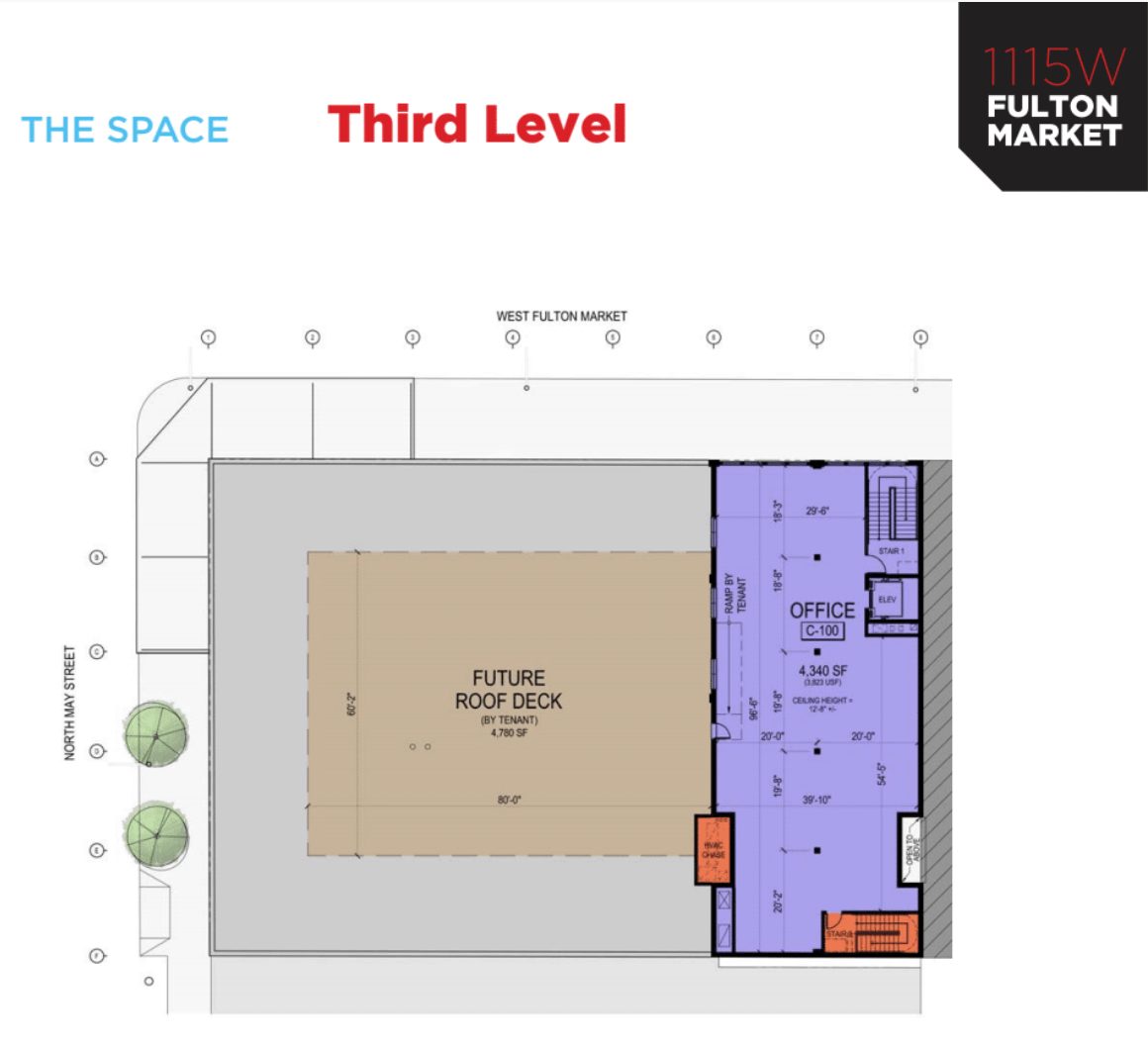 McCaffery Interests is in the process of reimaging 1115 W Fulton Market into an innovative space and inspirational mixed-use hub. Located on the corner of W Fulton Market and N May Street, this warehouse-style building has 19,737 SF available over the second and third floors. The space is airy and offers traditional West Loop/ Fulton Market build, with reclaimed wooden rafters and modern lighting, making full use of the charismatic warehouse atmosphere. Both floors are fully lined with windows and can be easily adapted to suit the specific needs of any company. The ground floor of the building was just leased by a new tenant: Galley Group, a food incubator in the style of Revival Food Hall. It’s sure to be an exciting infusion to the deliciously busy dining options, not to mention an incredible perk for any office location.