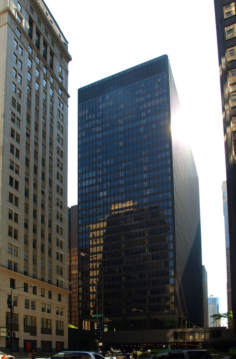Also known as Two Illinois Center, this structure was built by Fujikawa Johnson & Associates in 1972. It’s part of an assembly of Mies van der Rohe style skyscrapers in the heart of Chicago that dominate the skyline. The pedway, another of Chicago’s hidden treasures, goes directly through the building, and multiple new walkways allow pedestrians access to nearby buildings without needing to brave the snow and sleet. The space also comes with amenities including elevator ID and access to a comprehensive corporate fitness center.