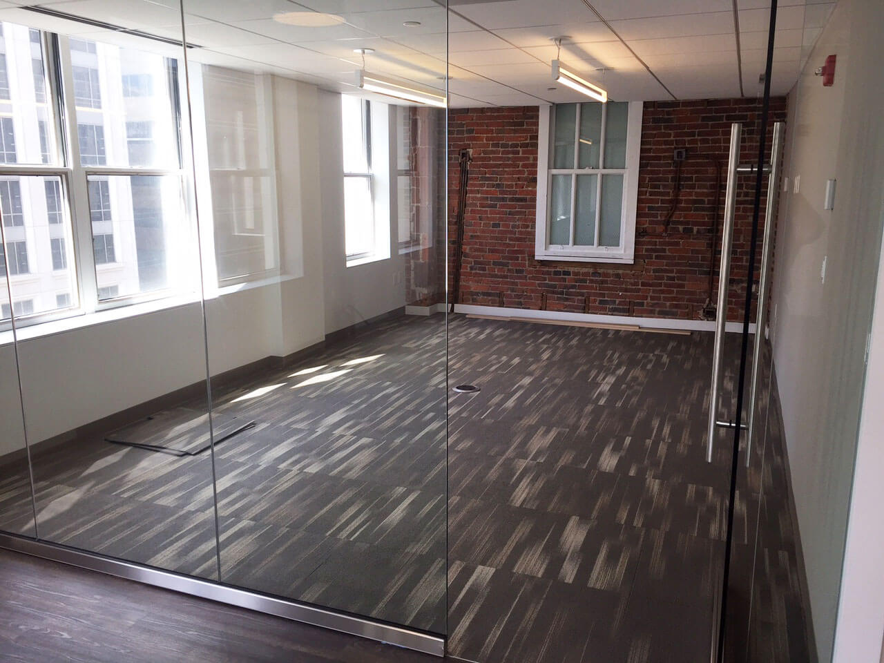 Tenants in the building will also enjoy a brand new lobby that includes a conference room exclusive to the building’s tenants. MRP connected the East and West cores of the building with a high-end lobby as part of their grandiose repositioning of the larger 230,000 SF East Tower. The East Tower, which features one of the most unique large blocks of atrium space in the city, was just completely reskinned with floor-to-ceiling glass. (If you happen to be looking for 40,000 SF+ and have deep pockets, contact us and we will give you more details – photo teasers below).