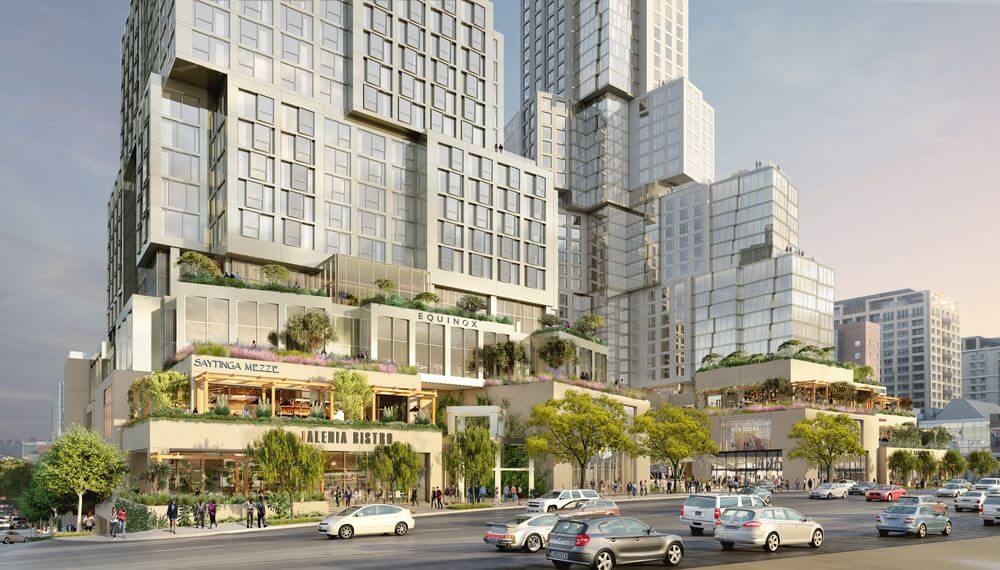 The project, dubbed The Grand, will boast 20,000 SF of retail integrated within the plaza, a 450-seat cinema, and a 20-story, 314-room Equinox hotel to the parcel at First and Grand, which is currently operated as a parking structure. The other parcel will include a 39-story tower with 113 condos and 323 apartments (20% of the apartments will be subsidized to low-income tenants).