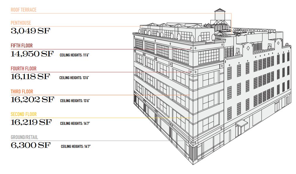 As tech and creative firms continue to mature in Silicon Alley (the New York equivalent of Silicon Valley), many of these companies are seeking full-building opportunities and unique spaces to attract and retain their talent base, while also building their brands and corporate (or non-corporate) cultures. Accordingly, the chance to inhabit an entire loft building in one of Manhattan’s hottest neighborhoods, with branding and signage as well as unique architectural features is quite compelling. The entire building measures approximately 70,000 square feet and features naming rights, multiple terraces, skylights, extra-high ceilings, minimal columns, and great light throughout. The asset, which is a stone’s throw away from the buzzing restaurant scene and nightlife of the West Village, is an ideal location for companies seeking easy access to some of the finest amenities for their young workforces, as well as a plethora of transportation options.